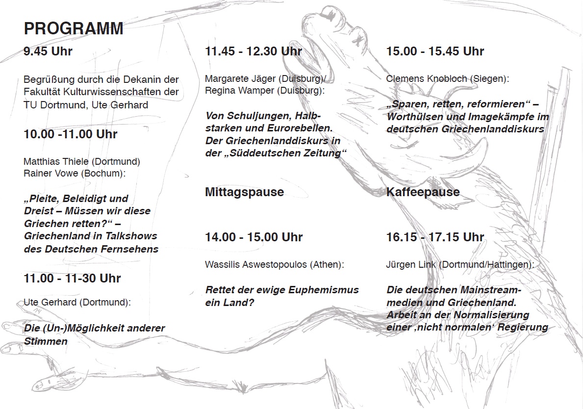 P.S.: Der Vortrag von Jürgen Link ist inzwischen als Video abrufbar: Die deutschen Mainstreammedien und Griechenland. Arbeit an der Normalisierung einer ’nicht normalen‘ Regierung